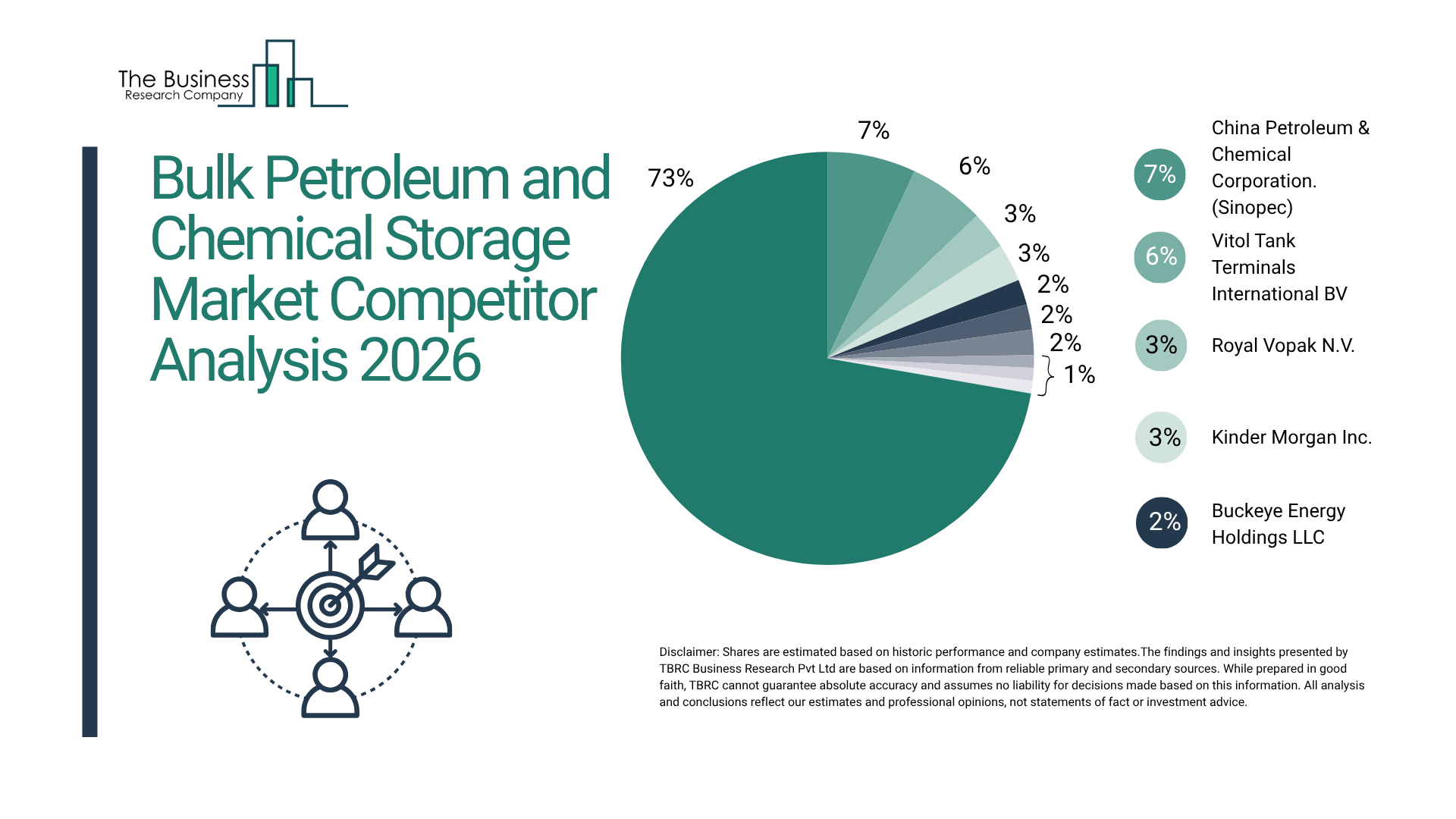 LONDON, GREATER LONDON, UNITED KINGDOM, April 21, 2026 /EINPresswire.com/ — The bulk petroleum and chemical storage market is dominated by a mix of global energy infrastructure companies, specialized tank storage operators, and engineering, procurement, and construction (EPC) firms. Companies are focusing on advanced storage tank materials, digital monitoring and automation systems, terminal expansion and modernization, safety and leak detection technologies, and integration of sustainable storage solutions to strengthen market presence and meet evolving regulatory and operational standards. Emphasis on storage capacity optimization, operational safety under hazardous conditions, environmental compliance, efficient handling of volatile substances, and adherence to stringent industry regulations remains central to competitive positioning. Understanding the competitive landscape is essential for stakeholders seeking growth opportunities, infrastructure investments, and strategic partnerships within the rapidly evolving global energy and chemical logistics ecosystem.